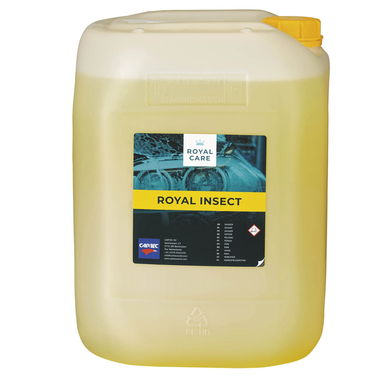 Royal Insect is een krachtige voorreiniger voor in de wasstraat welke zeer effectief is in het losweken van insectenresten. De aangename geur maakt dit product zeer prettig om mee te werken. Royal Insect is net als de andere Royal Care producten NTA-vrij.