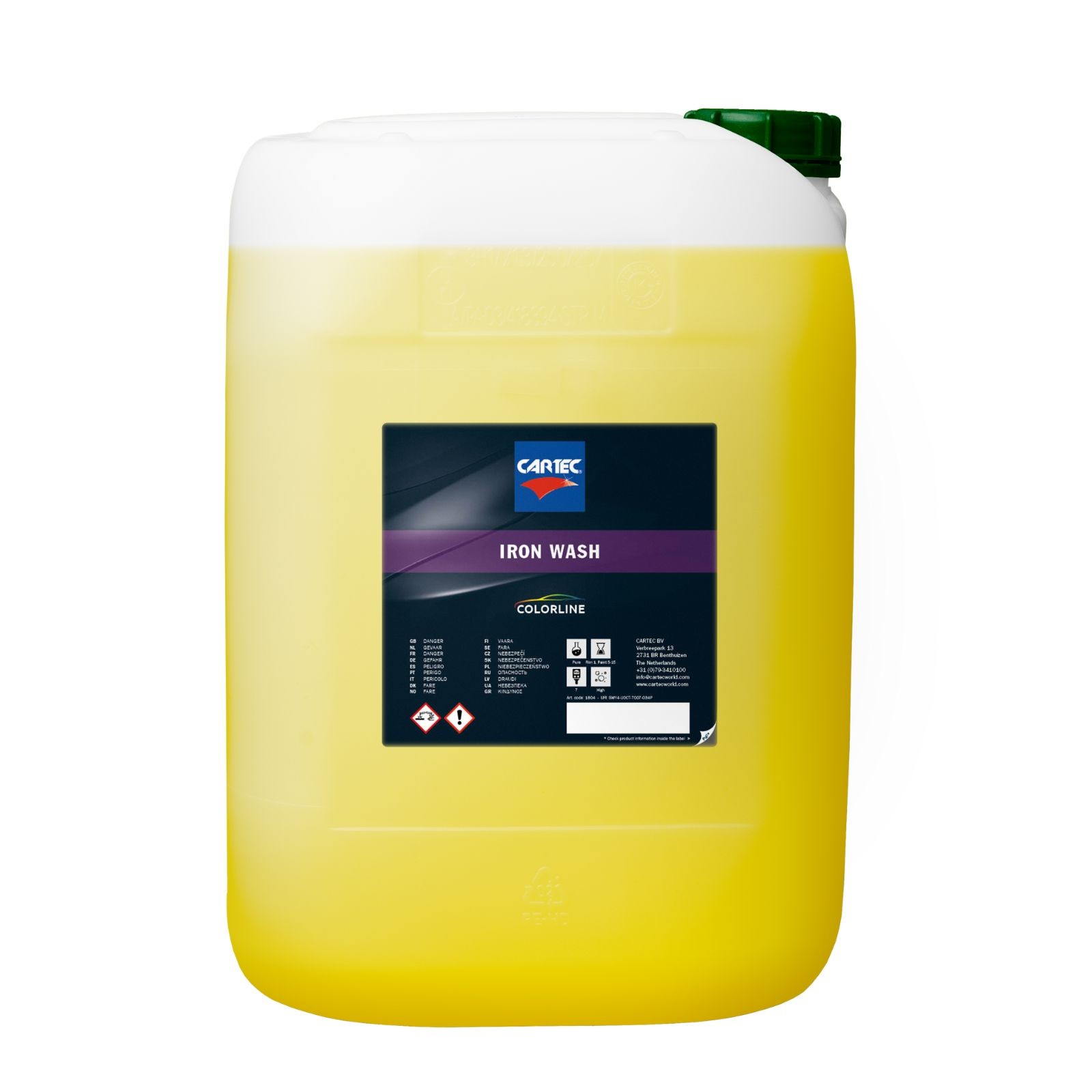 Iron Wash est un nettoyant efficace pour éliminer la rouille volante sur la peinture automobile, les jantes et les vitres. Il réagit avec les particules métalliques et provoque un effet violet 'saignant' qui dissout les particules. Ce produit au pH neutre nettoie aussi les poussières de frein tenaces et est idéal comme nettoyant jantes.
