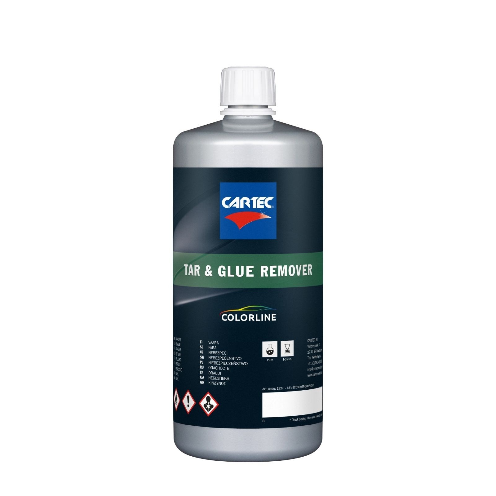Tar & Glue Remover verwijdert snel en gemakkelijk opgespatte teer- en bitumenresten van voertuigen. Dit speciaal ontwikkelde product is essentieel voor grondige reiniging, en werkt ook goed op lijm-, asfalt-, ruitenkit- en stickerresten.