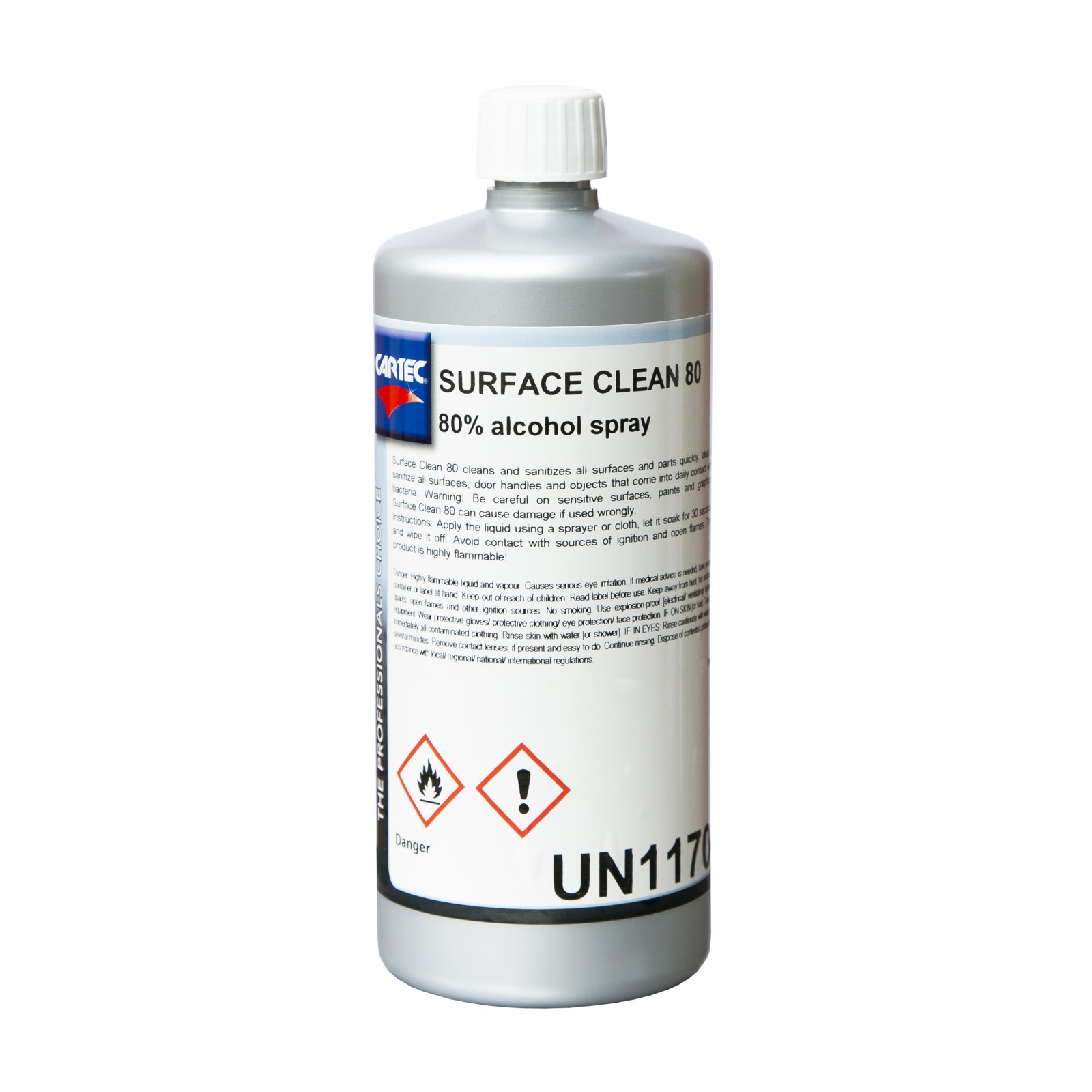 Surface Clean 80 Omschrijving Surface Clean 80 reinigt en ontsmet snel alle oppervlakken en onderdelen. Dit desinfectiemiddel is ideaal voor het ontsmetten van oppervlakken, deurgrepen en gebruiksvoorwerpen die dagelijks in aanraking komen met bacteriƫn. Code SC80 Login om direct te bestellen
